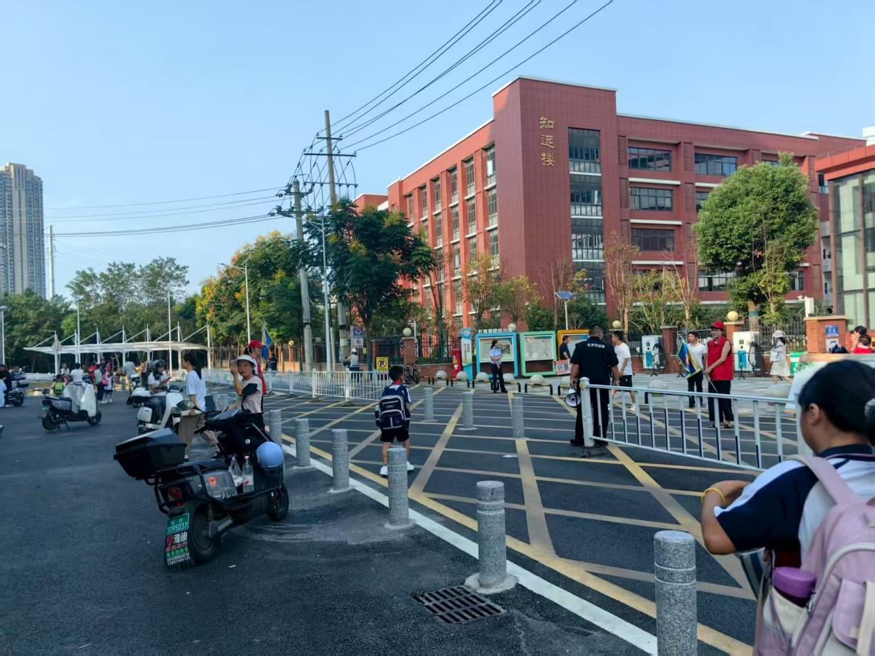此次行动由社区党组织牵头,联动学校党支部、物业党支部成立“校园交通安全党建联建小组”,聚焦车辆违停、通行效率低及人车混行等突出问题,通过增设隔离设施、清理违停车辆、实行单向行驶等综合措施加以解决,有效畅通了校园周边交通“毛细血管”。本次行动推动社区、学校、物业从“各自为战”转向“协同作战”,为学生上下学安全筑牢“红色屏障”。
