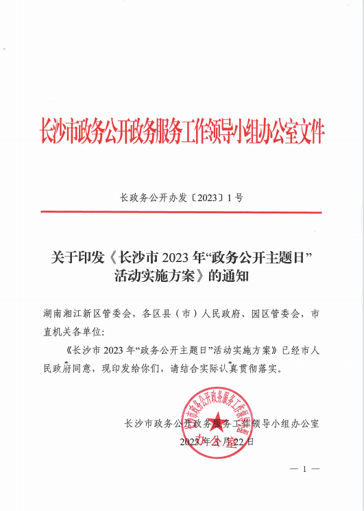 长沙市政务公开政务服务工作领导小组办公室 关于印发《长沙市2023年“政务公开主题日”活动实施方案》的通知