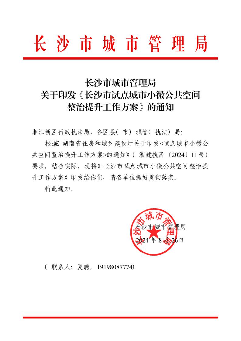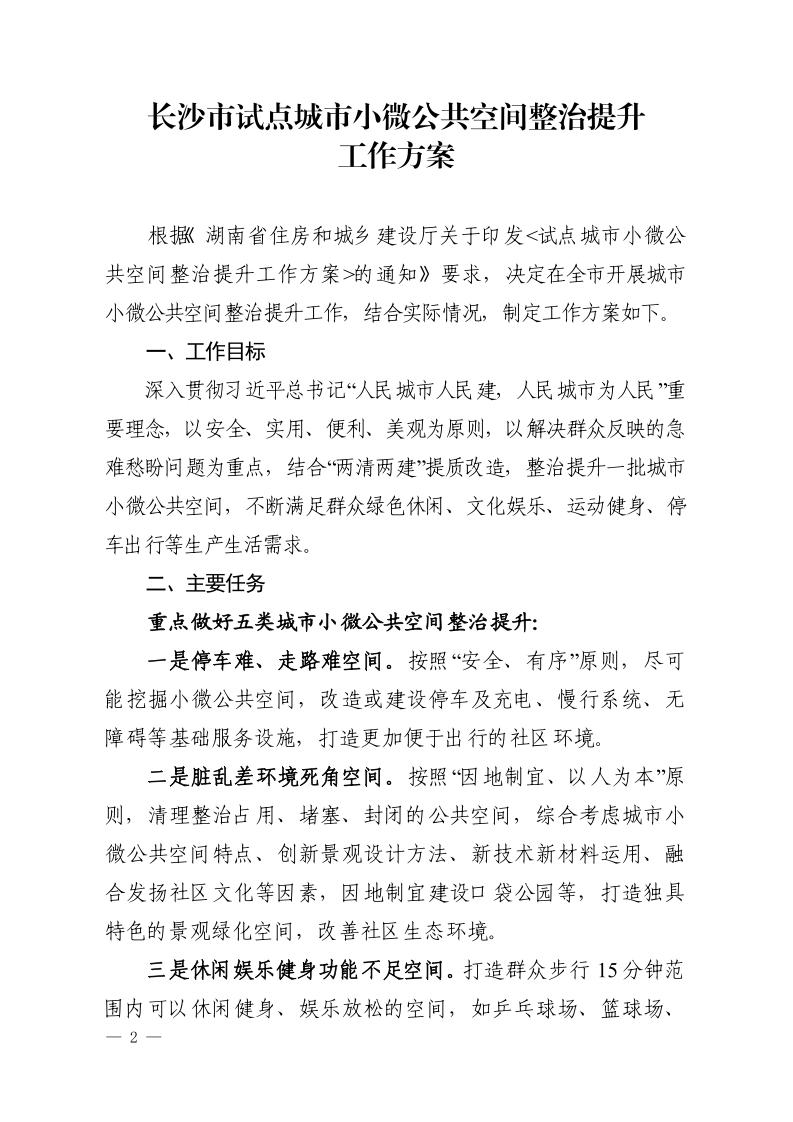 关于印发《长沙市试点城市小微公共空间整治提升工作方案》的通知