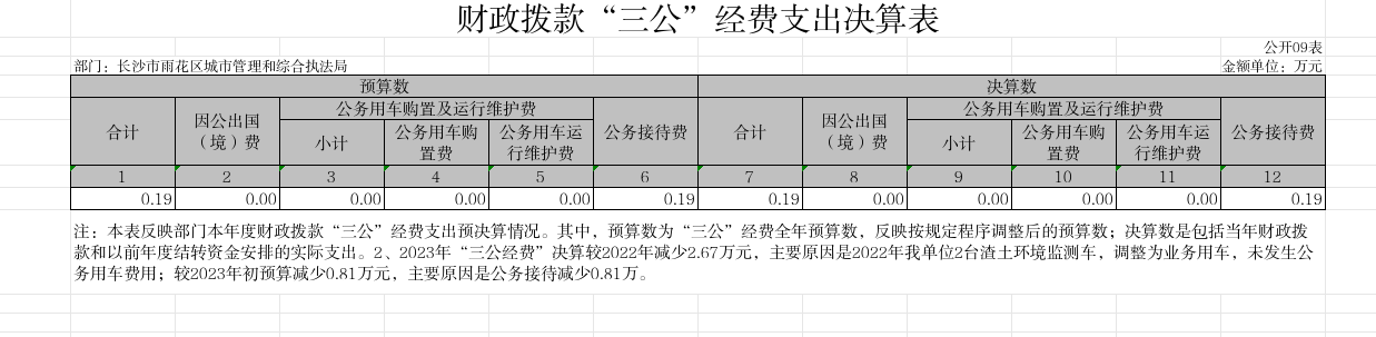 2023年度长沙市雨花区城市管理和综合执法局“三公”经费决算公开表格
