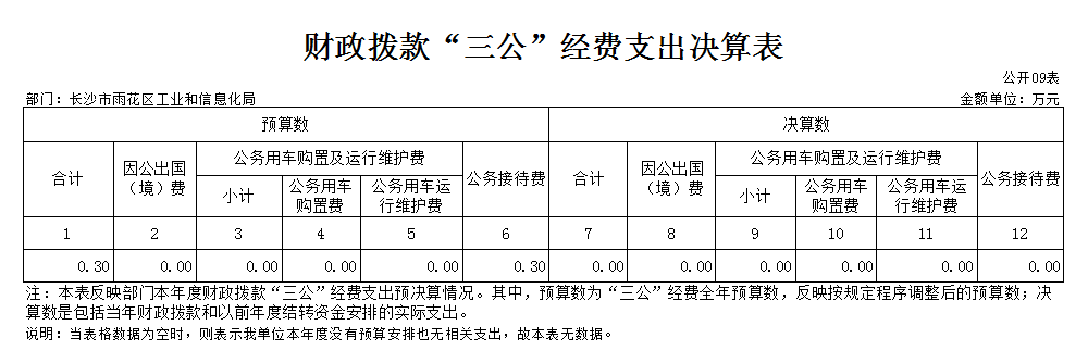 长沙市雨花区工业和信息化局2023年“三公”经费支出决算表