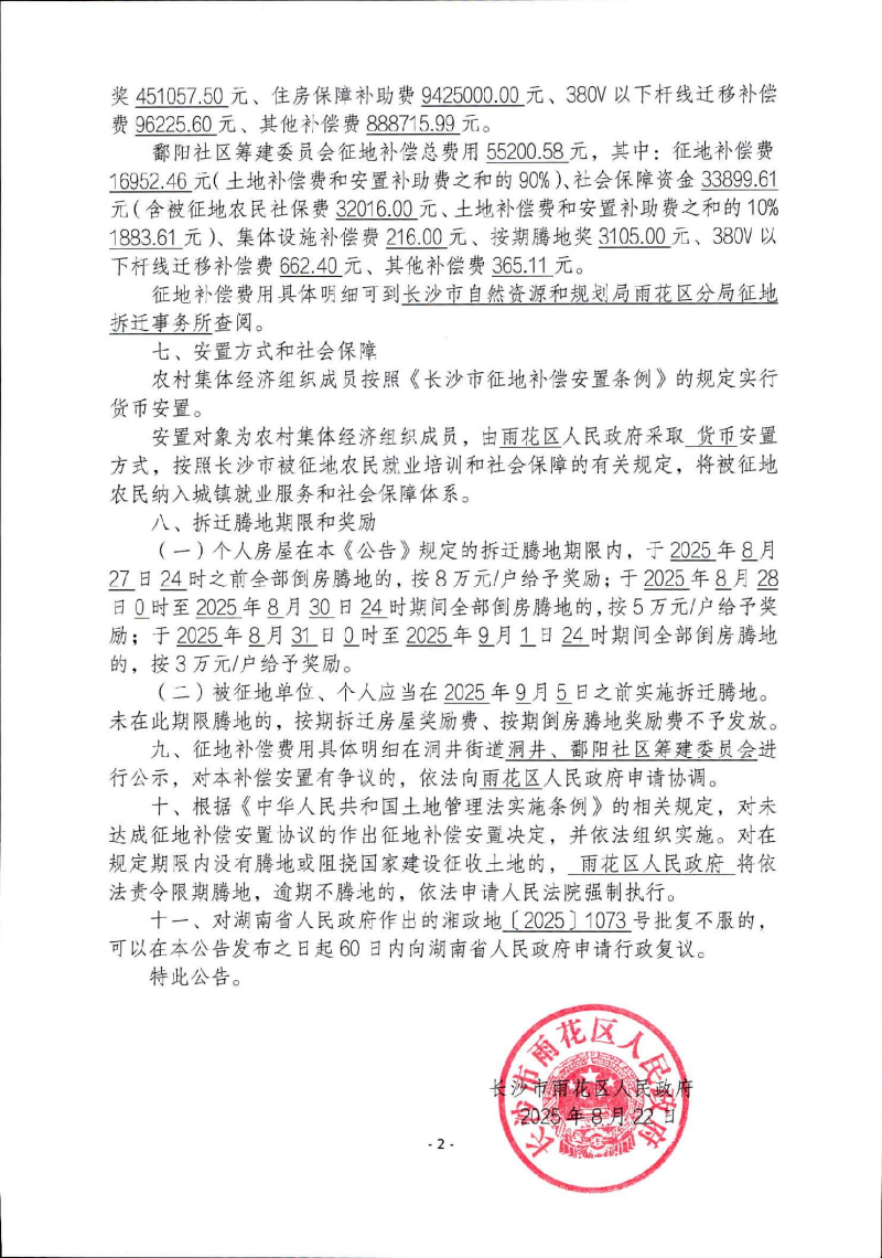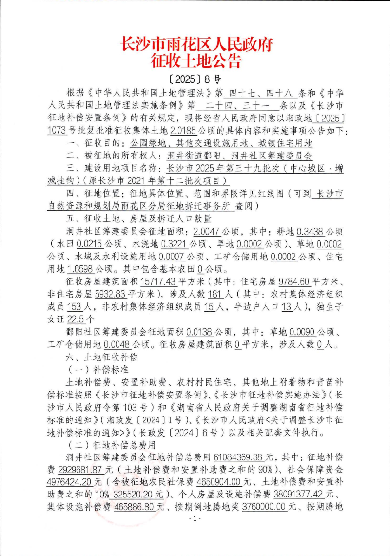 长沙市雨花区人民和记AG征收土地公告【2025】8号