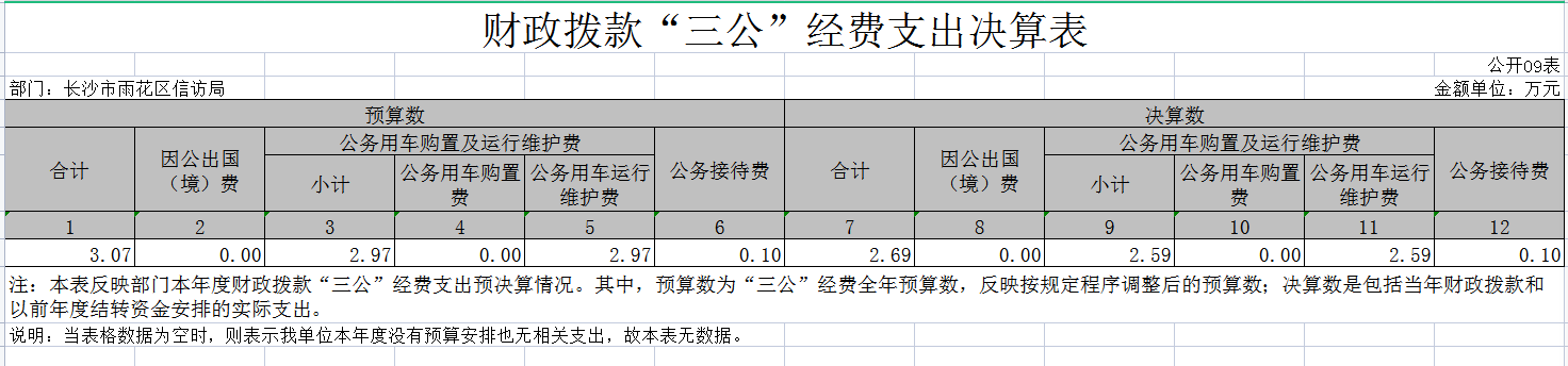 2023年度雨花区信访局财政拨款“三公”经费支出决算表