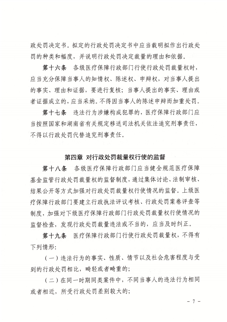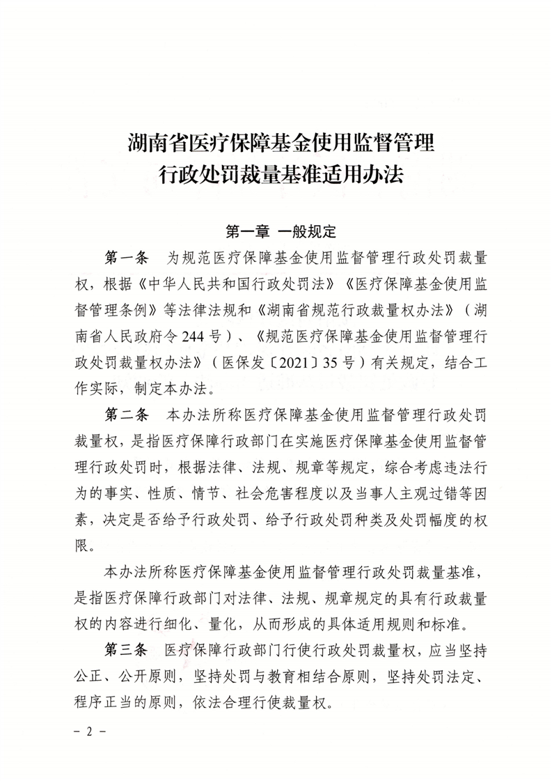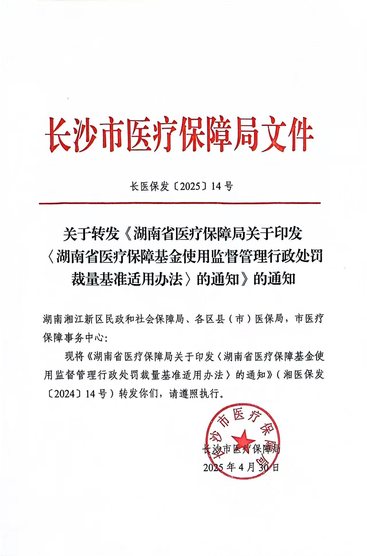 关于转发《湖南省医疗保障基金使用监督管理行政处罚裁量基准适用办法》的通知