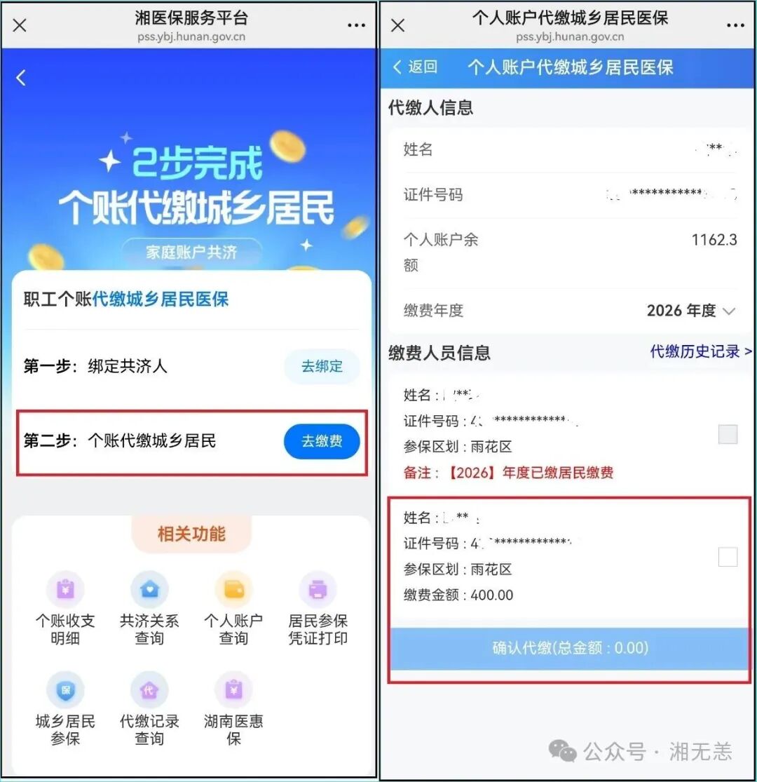 湖南个账代缴2026年居民医保费功能上线啦!