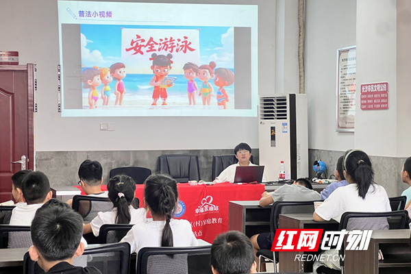 讲座尾声,社区工作人员特别播放了暑期防溺水安全教育视频,通过生动的画面和讲解,再次为孩子们敲响安全警钟,强化“珍爱生命,远离危险水域”的安全意识。